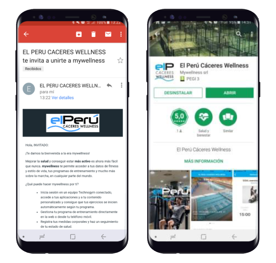 CREA TU CUENTA: Debemos mandarte un email desde EL PERÚ CÁCERES WELLNESS invitándote a unirte a la app.