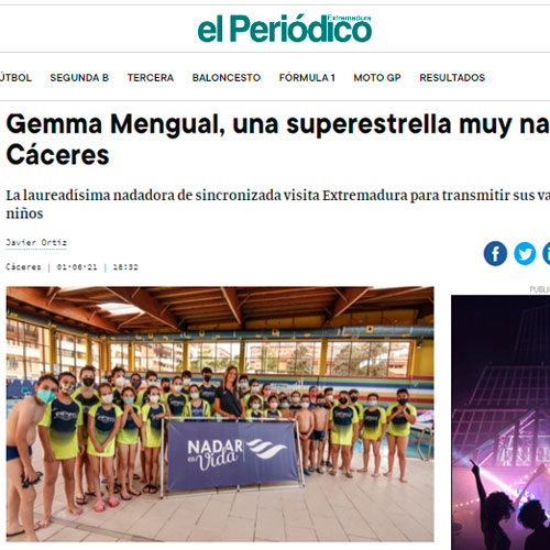Tras la rueda de prensa realizada en la piscina, se grabó un directo con Gemma y los nadadores realizando la práctica junto a los presentadores de "A esta hora" de Canal Extremadura, y se trabajó durante una hora en esta clase mixta aprendiendo diferentes ejercicios y coreografías. Los niños y niñas del club, muy habituados a nadar, tuvieron más problemas para mantener las posiciones en flotación o seguir las coreografías, pero disfrutaron y se llevaron una experiencia que sin duda les marcará en su futuro.