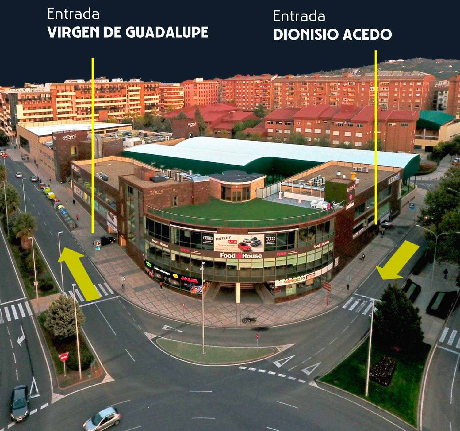 Las dos plantas inferiores del centro corresponden a nuestro parking, con amplios espacios y precios reducidos por minuto y día. Es una concesión municipal y tiene dos accesos públicos, uno desde la Avenida Virgen de Guadalupe, una de las arterias de la ciudad, y la otra por otro lateral, Dionisio Acedo. Varios de los negocios del centro comercial Avenida 41 tienen parking gratis concertado. Además tiene salida directa a la calle, al centro deportivo y al centro comercial.